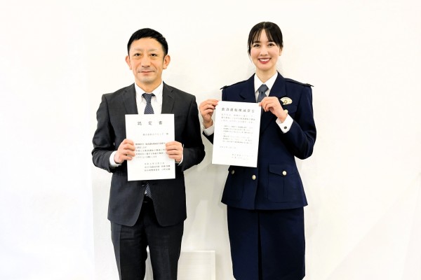 あきた交通安全大使の相場詩織さんより飲酒運転撲滅宣言事業所の認定書を授与していただきました。
